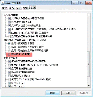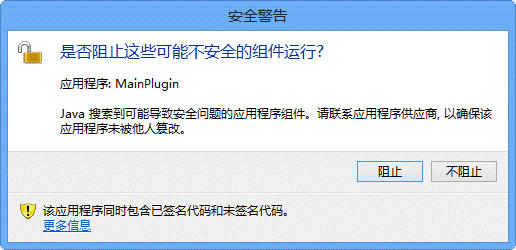 是因为JAVA运行环境从 Java SE 6 Update 19 版本开始,当程序同时包含签名和未签名组件时,