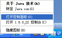 - 单击屏幕右下角Java 图标以打开 Java 控制面板。