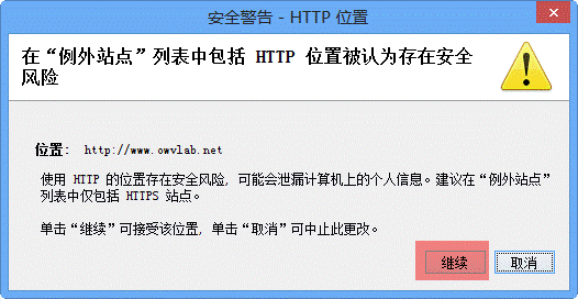 添加网站注意是主网地址也就是提示您Web站点不可信时显示的地址,这样就行了。